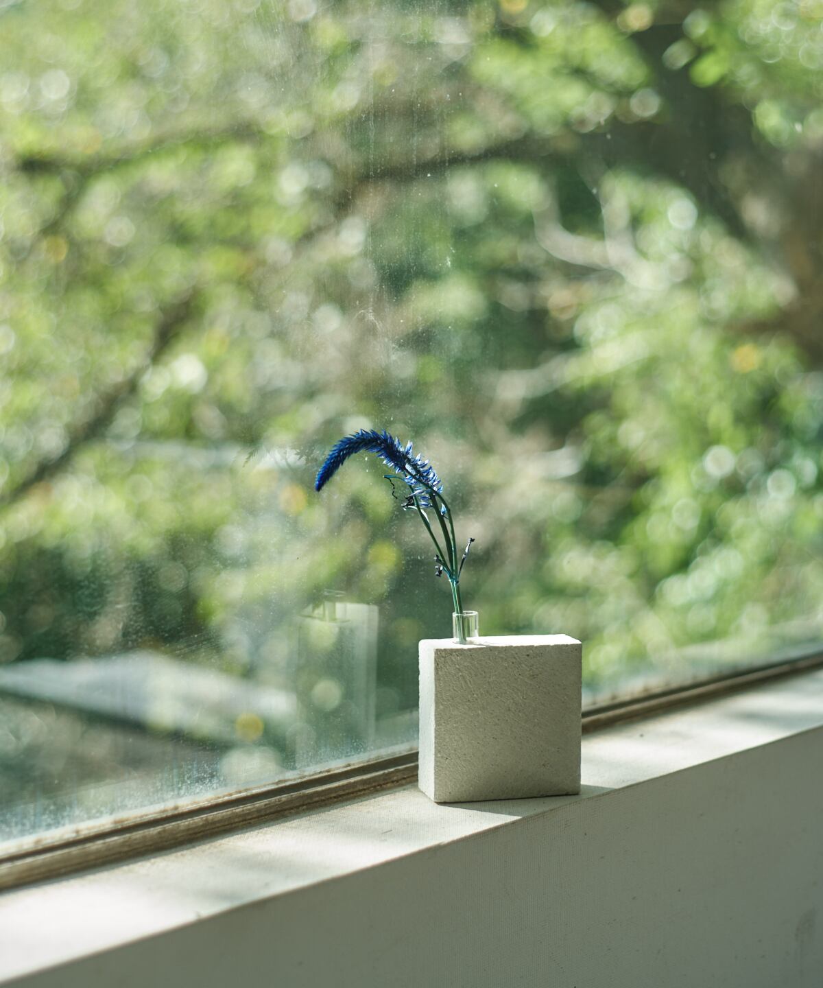Clay Flower Vaseは、四角く成形した土にガラスの試験管を合わせたフラワーベースです。表面の加工は人の手でひとつひとつ作られ、ミニマルなデザインの中にも温もりが感じられます。