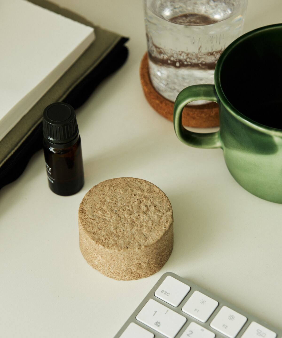 お好みのエッセンシャルオイルを数滴落とすと徐々に染み込んでいき、オイルの香りがゆっくりと空間に拡散していきます。ピンポイントで香るので、デスクやベッドサイドなどプライベートな空間で使うのがおすすめです。